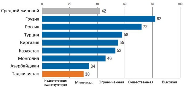 В результате Таджикистан по-прежнему сохраняет позицию аутсайдера, что видно из нижеприведенной диаграммы.