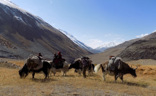 На этом фотоснимке от 7 октября показаны этнические кыргызские кочевые семьи, путешествующие на яках в Ваханском коридоре в Афганистане. [Гоар Аббас / АФП]