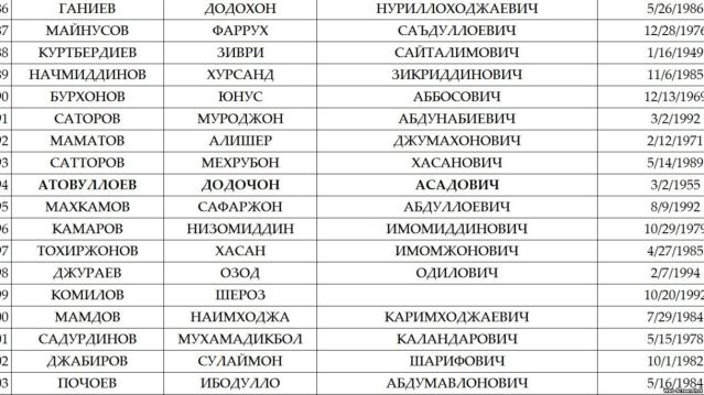 Две недели назад Национальный банк Таджикистана обнародовал список лиц, причастных к терроризму. В этом списке, составленным Департаментом финансового мониторинга Нацбанка, 1 тыс 372 гражданина РТ.