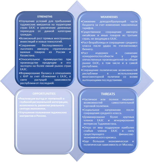 Рисунок 2. SWOT – анализ присоединения Таджикистана к ЕАЭС