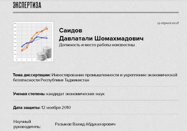 Паём: Вы ежедневно публикуете анализ диссертаций, которые состоят из плагиата. И все эти работы прошли утверждение в Высшей аттестационной комиссияи России. Как это выглядит, в Таджикистане и России работает целая совместная коррупционная группа, которая занимается покупкой-продажей научных работ и ученых степеней?