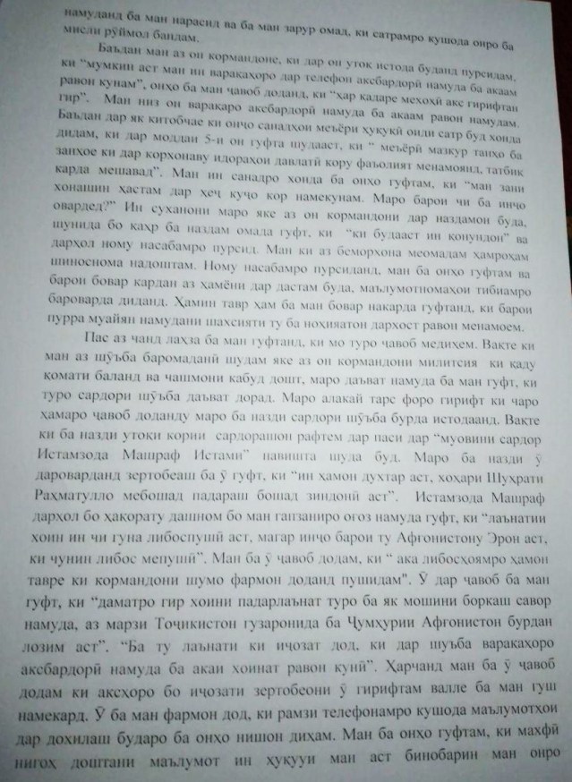 Ӯ нусхаи мактубро ба “Азия-Плюс” ирсол карда, зимни суҳбат гуфта буд, ки ноадолатӣ ва хомӯшии шахсони дахлдор водораш кардааст, ба Озода Раҳмон мактуб навишта, онро расонаӣ бикунад.