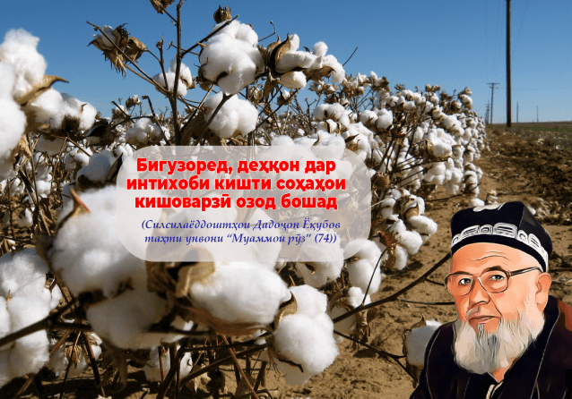 “Ба сабаби боло рафтани нархҳои хӯрокворӣ ва ҷанги Русияю Украина, ҳукумати ҷумҳурӣ бояд сиёсати худро дар соҳаи кишоварзӣ тағйир диҳад. Заминҳои кишти пахтаро кам намуда, ба сифат ва ҳосилнокии он эътибори ҷиддӣ дода шавад. Яъне ҳосилнокии ҳар як гектар баланд бардошта шавад. Вале ҳукумати мо баръакс замини кишти пахтаро зиёд карда истодаанд, то ки худ даромади зиёдтар ба даст дароранд, на миллат.…”